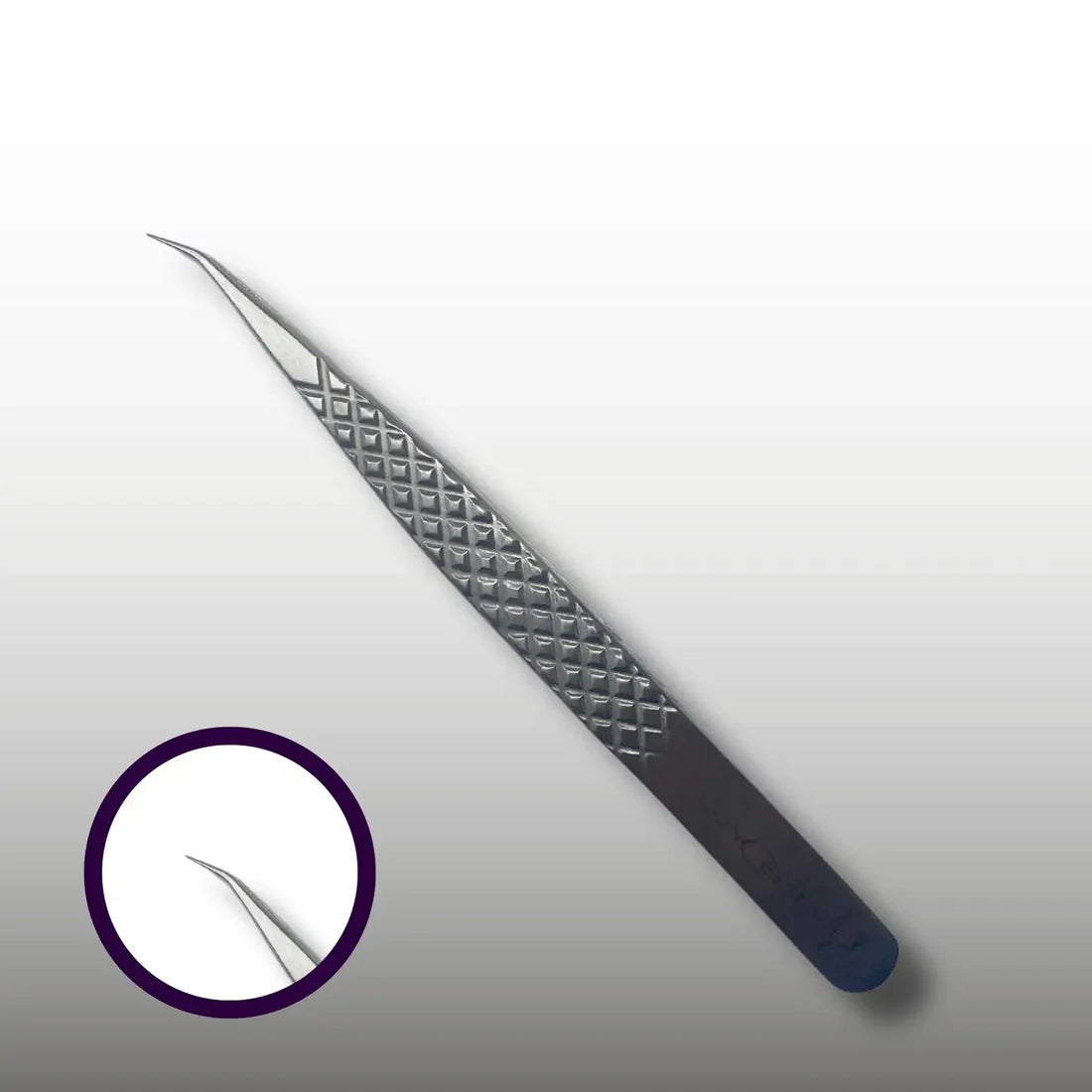 Pinzetta curva da 12 cm ideale per isolare le ciglia naturali con precisione. Punta ricurva e sottile, corpo antiscivolo per massimo controllo. Realizzata in acciaio di alta qualità e rifinita in elegante grigio.